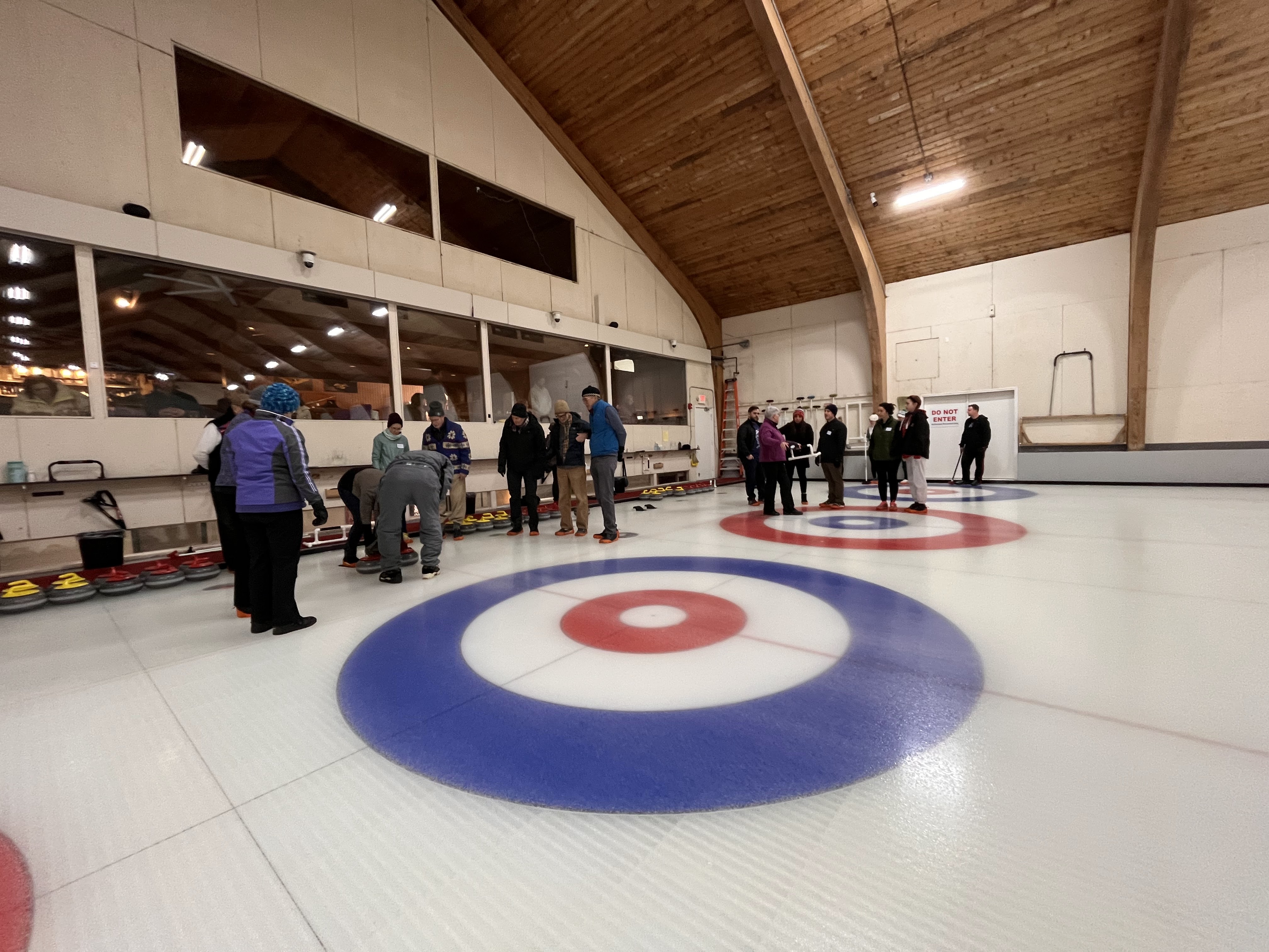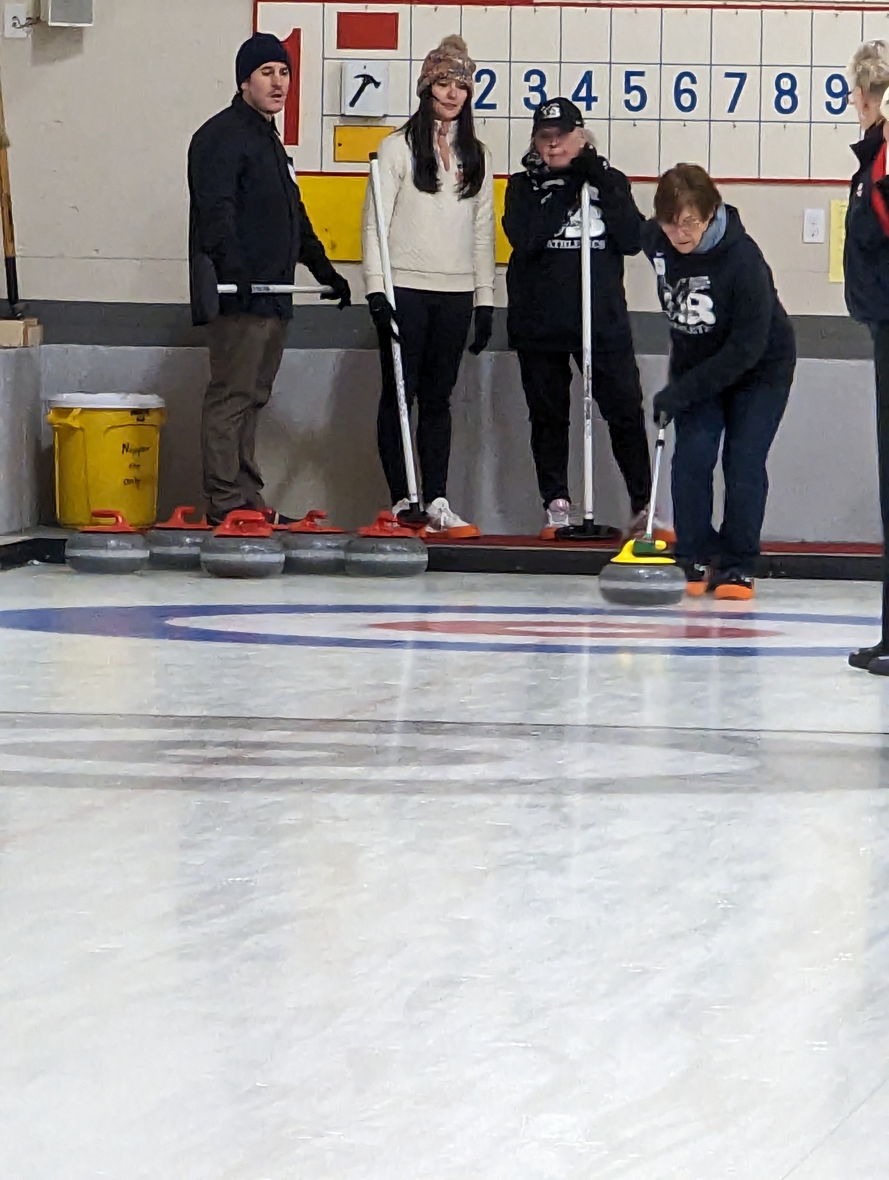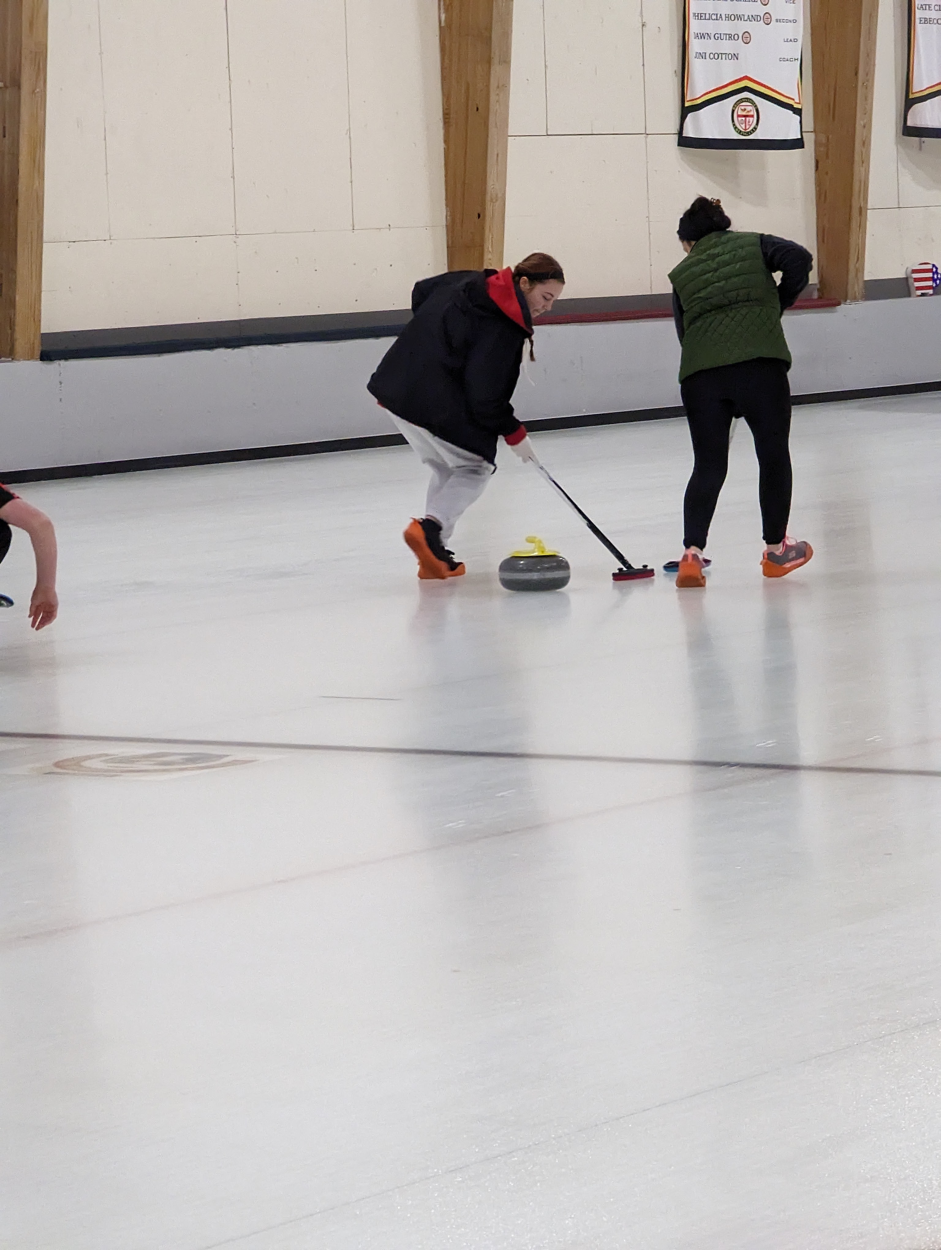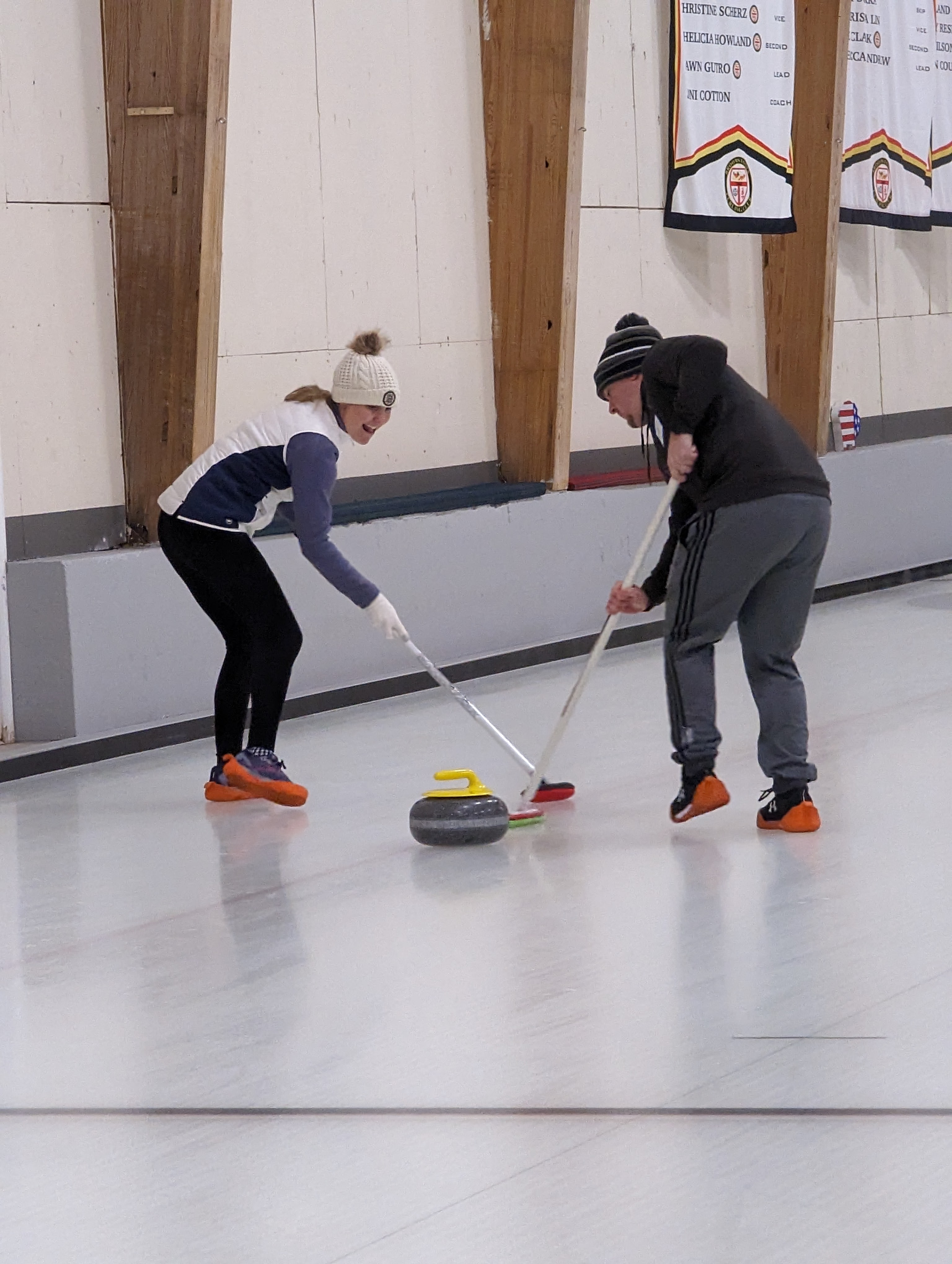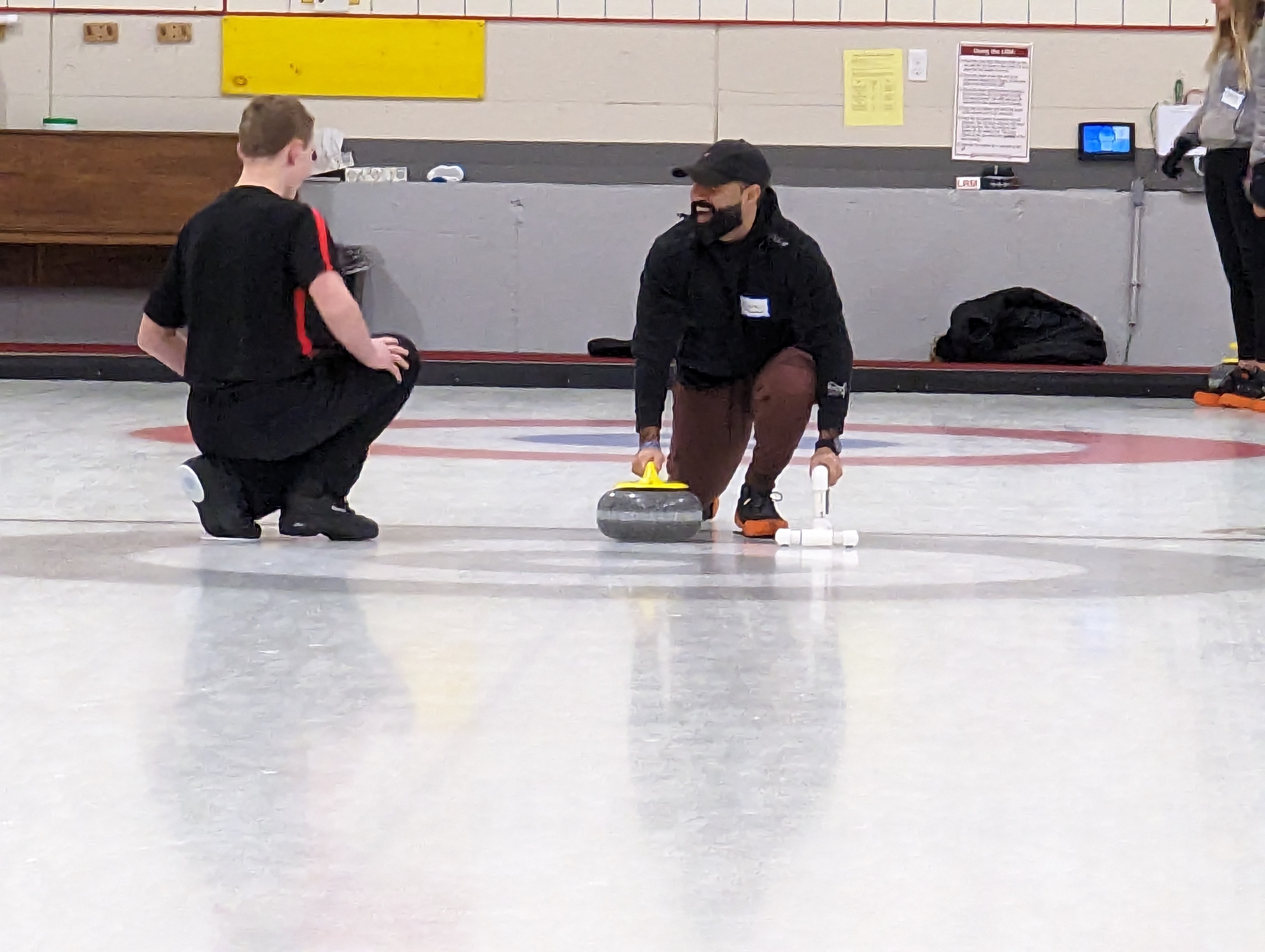 We started off with an informative safety briefing, then hit the ice to start learning the ropes of throwing, sweeping, and scoring. After a few practice rounds, each team played a brief game, then headed to the lounge for the traditional post-game drinks and banter. A great time was had by players and spectators alike. We look forward to hosting another curling event in the future! Good curling, everyone!