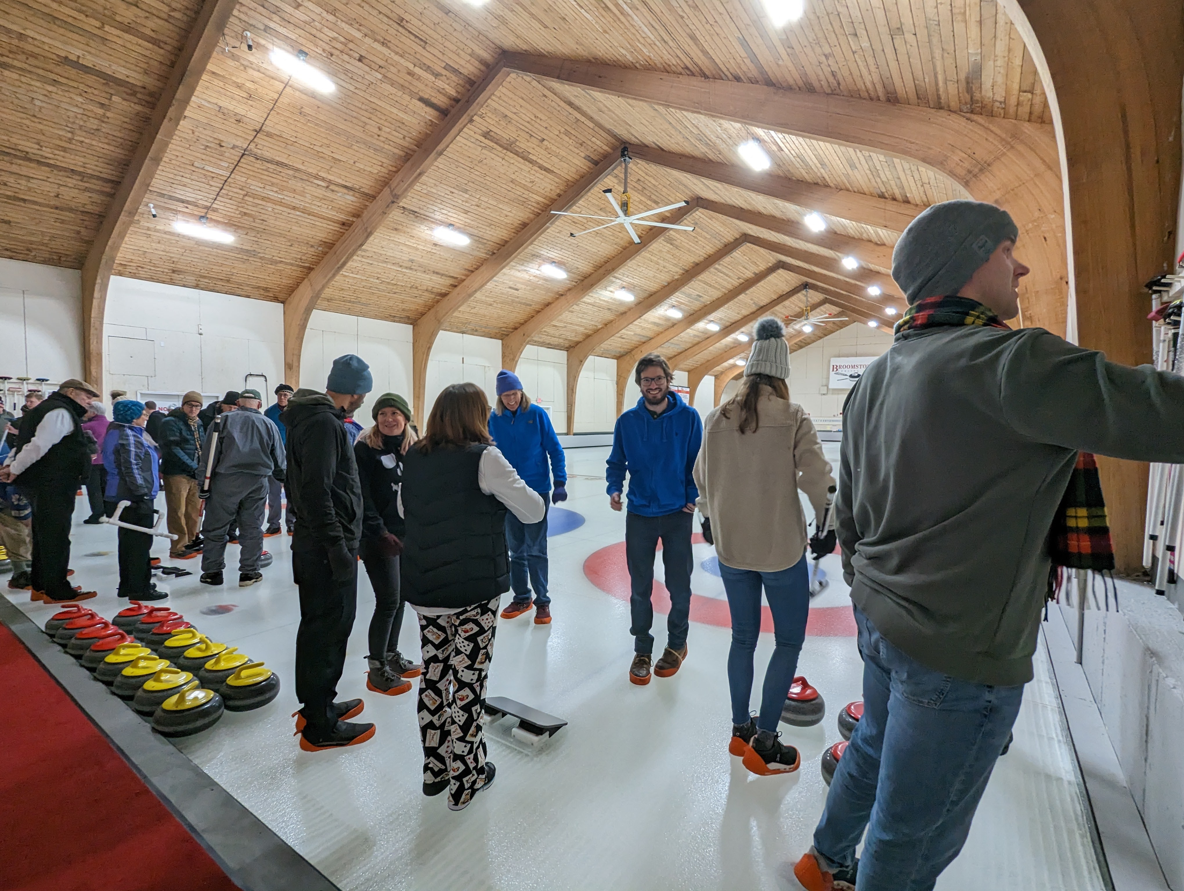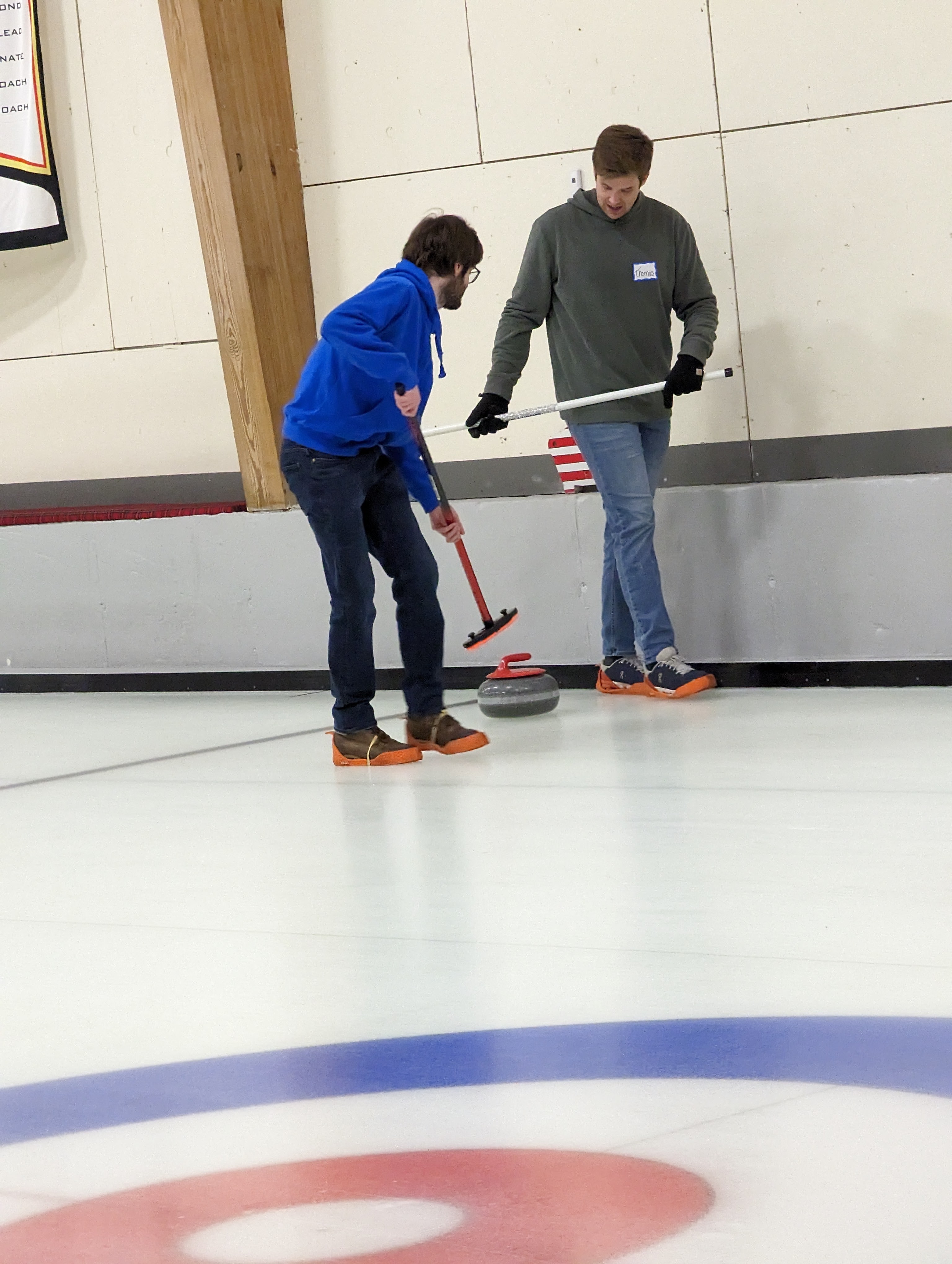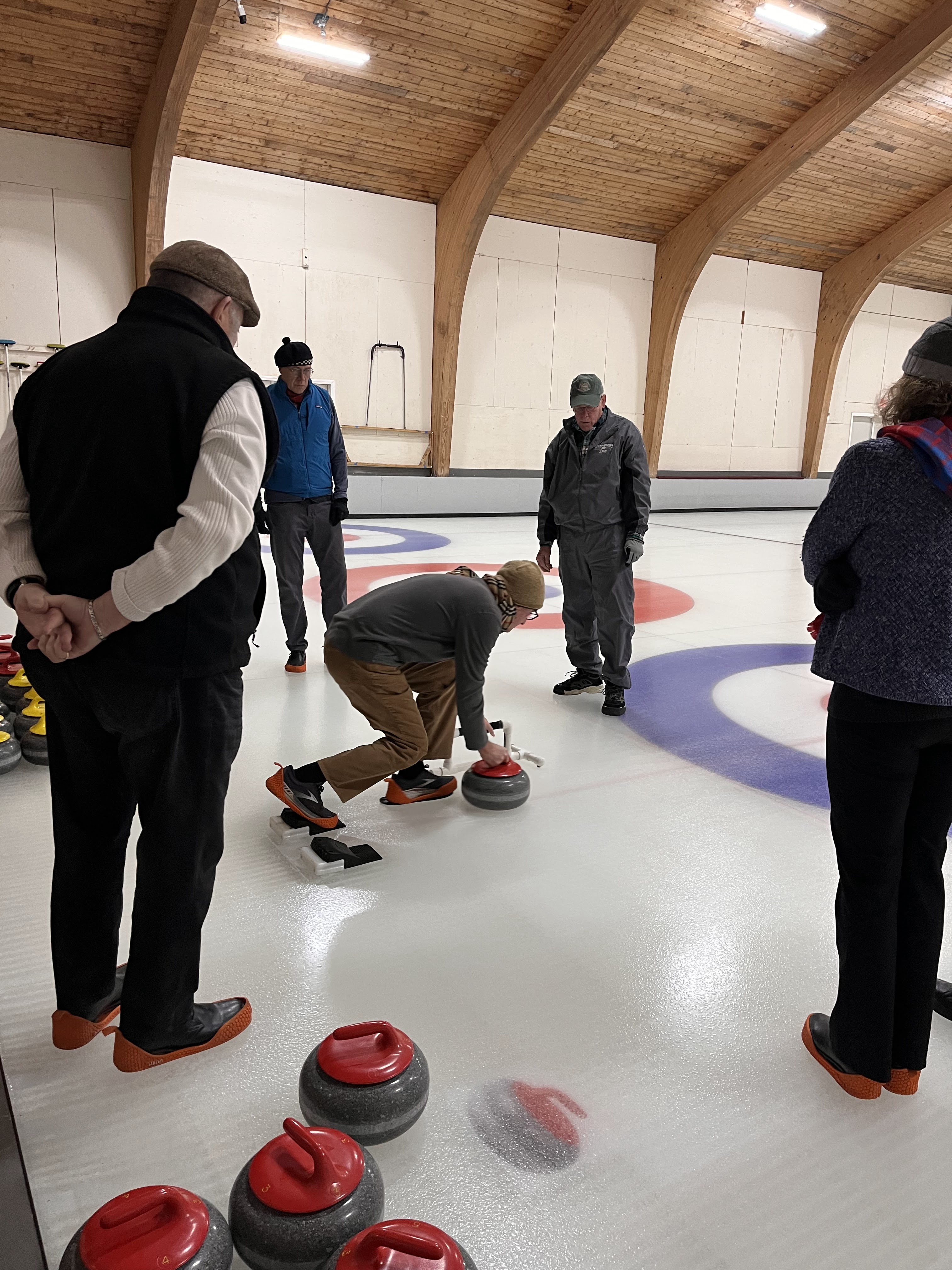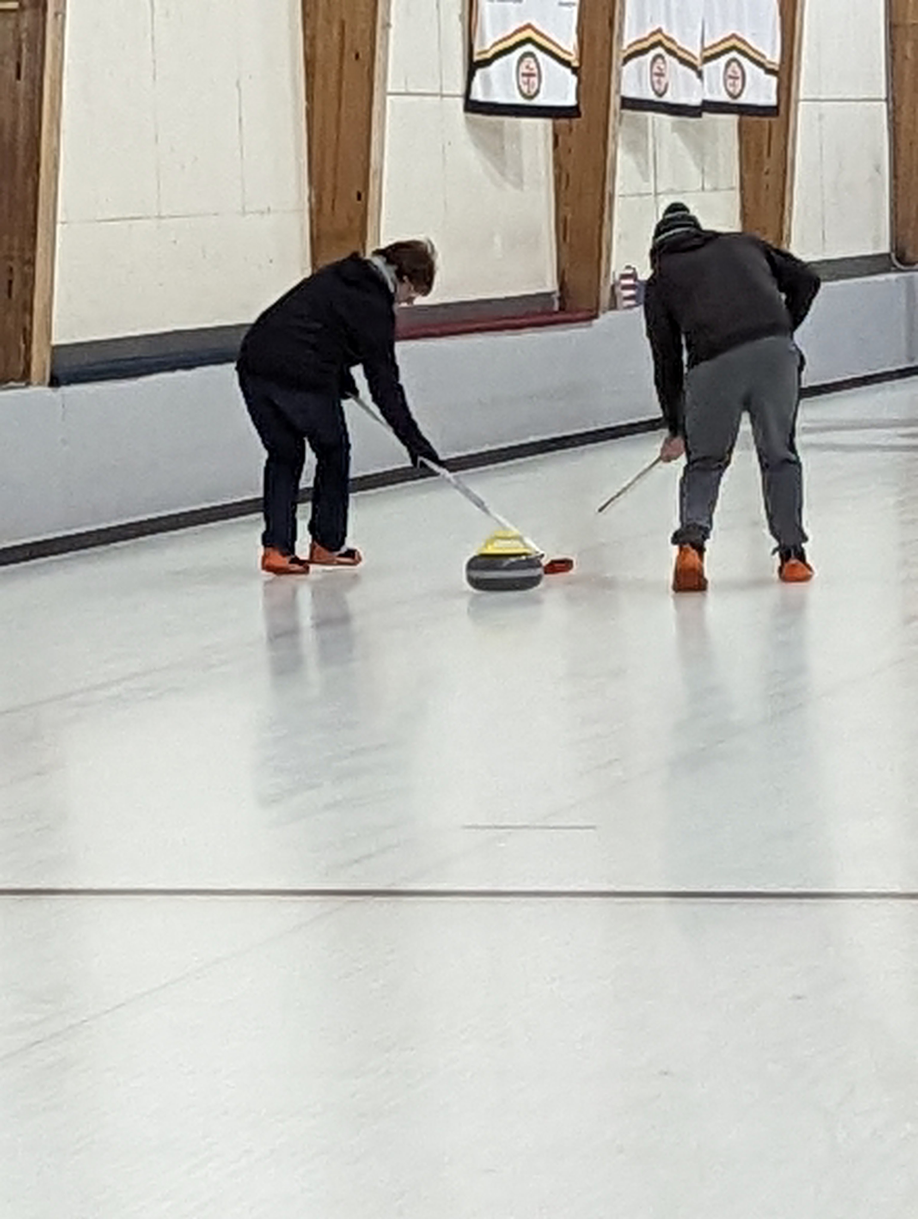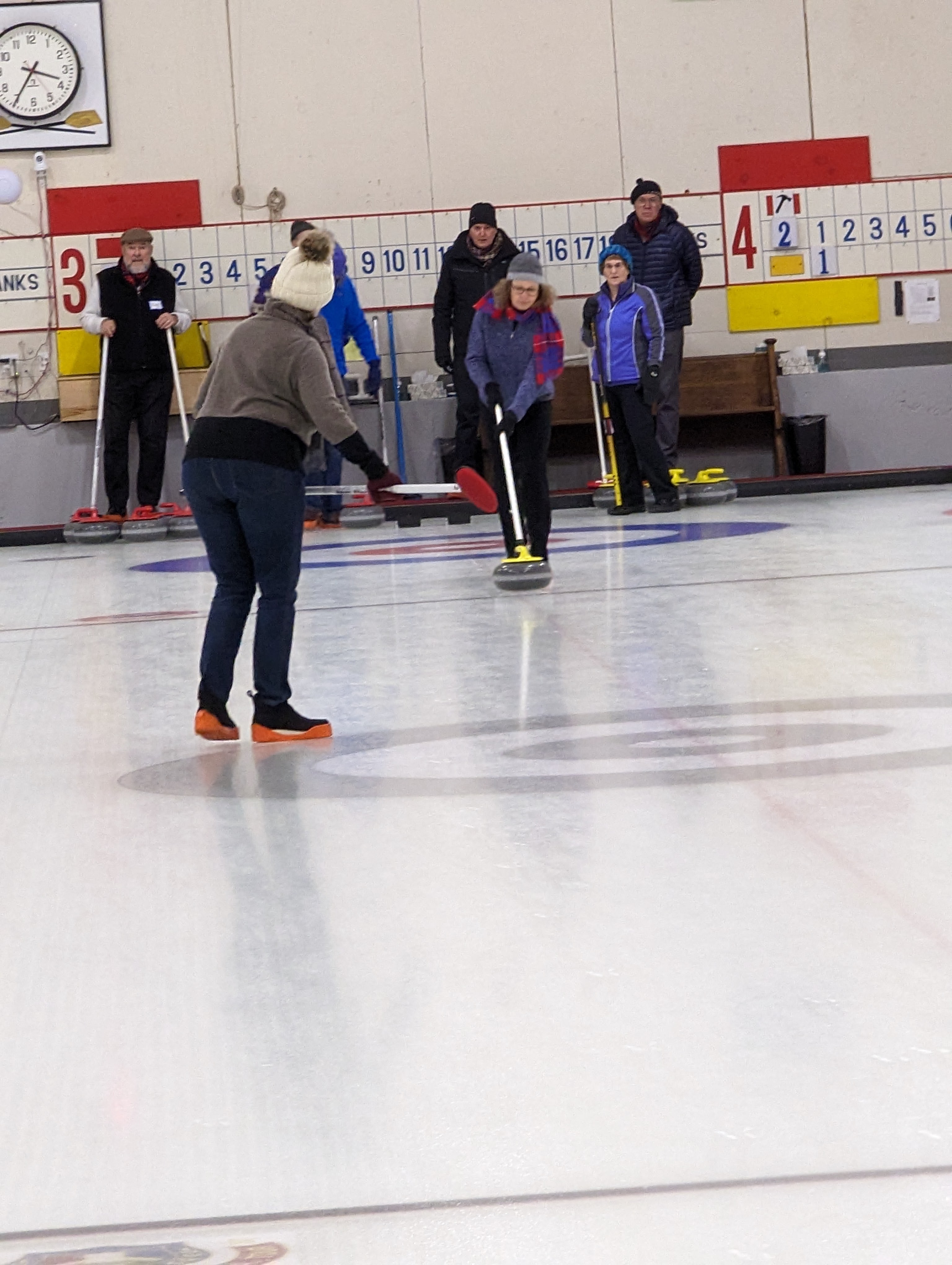 We started off with an informative safety briefing, then hit the ice to start learning the ropes of throwing, sweeping, and scoring. After a few practice rounds, each team played a brief game, then headed to the lounge for the traditional post-game drinks and banter. A great time was had by players and spectators alike. We look forward to hosting another curling event in the future! Good curling, everyone!
