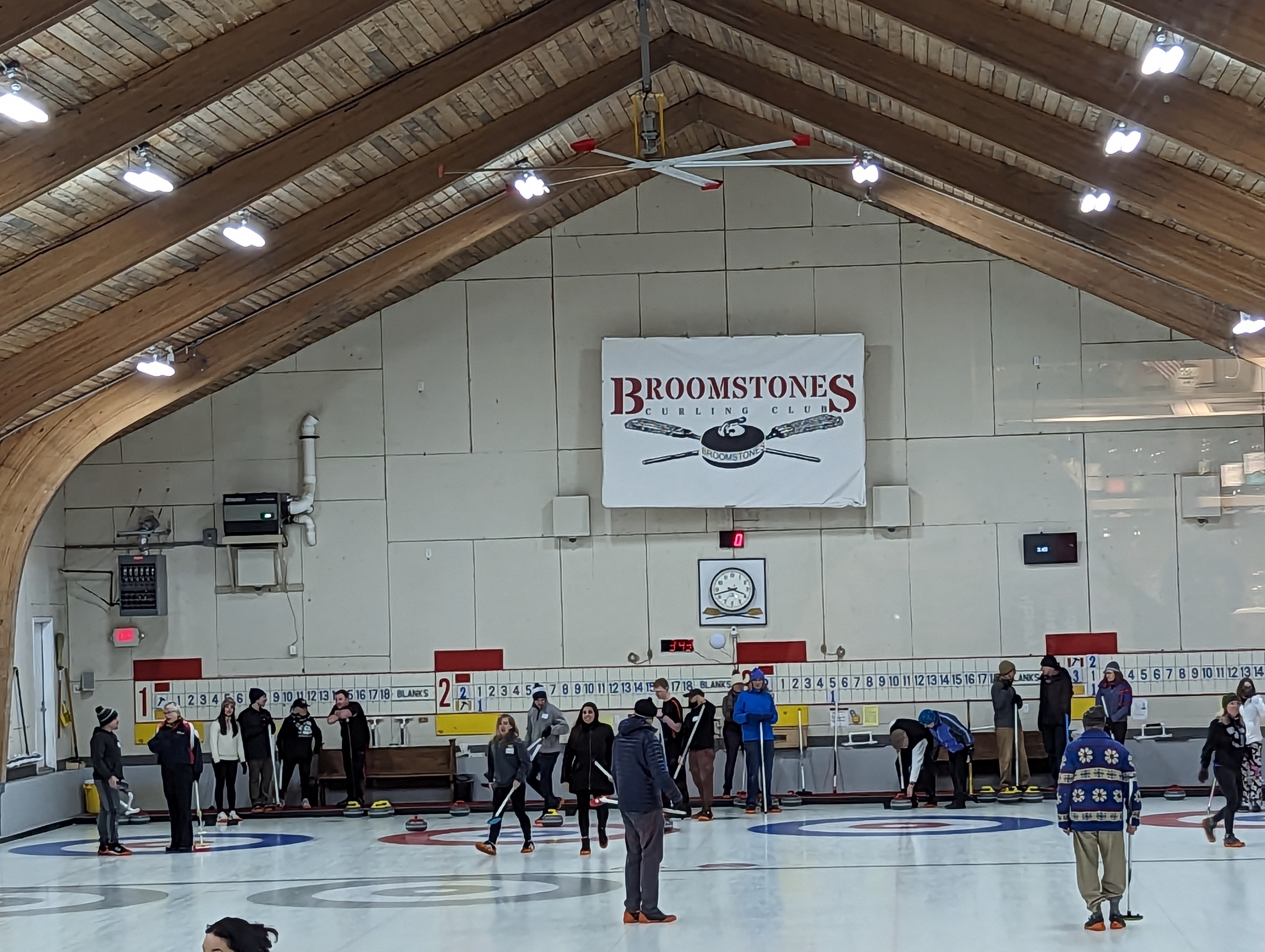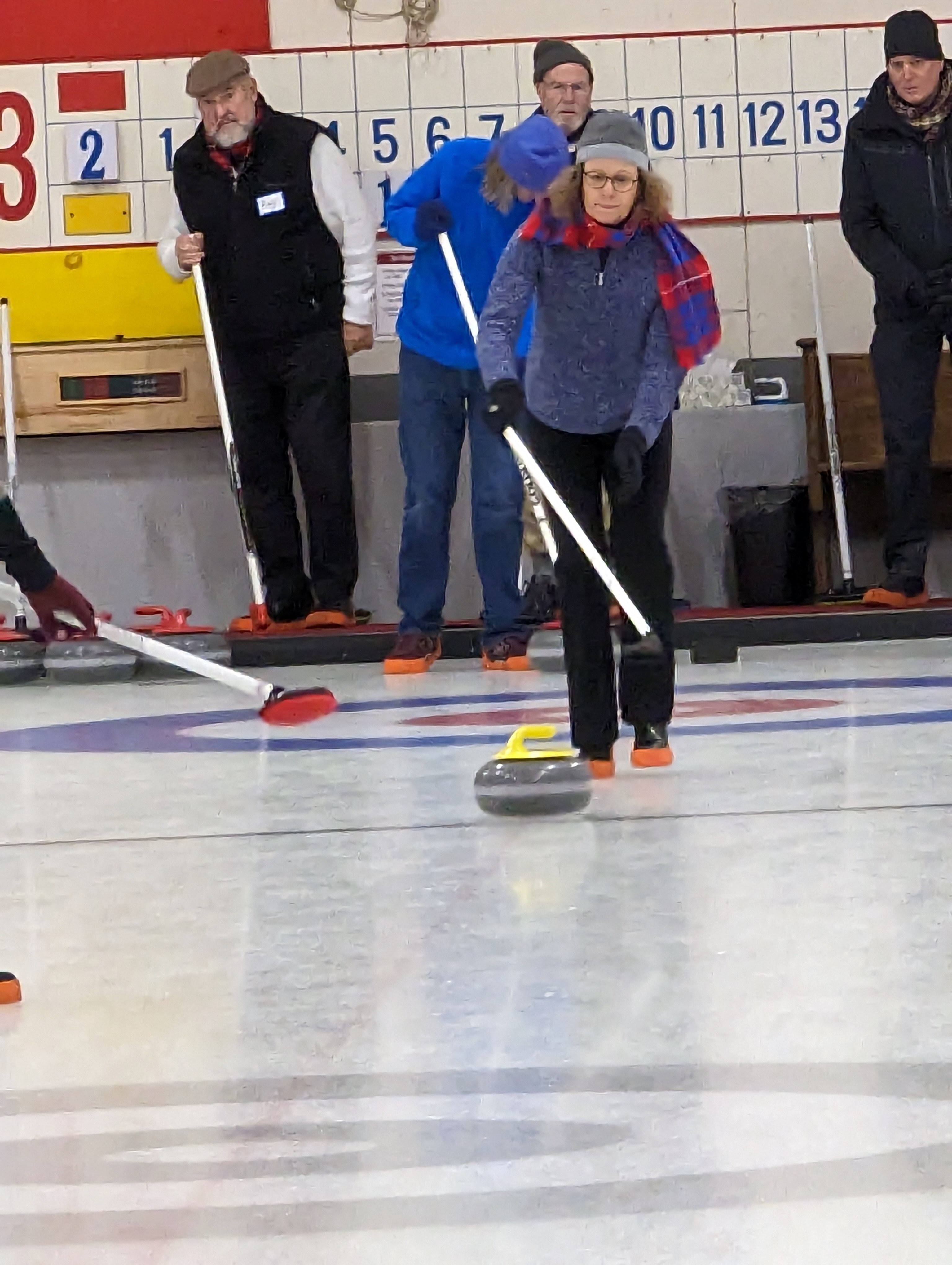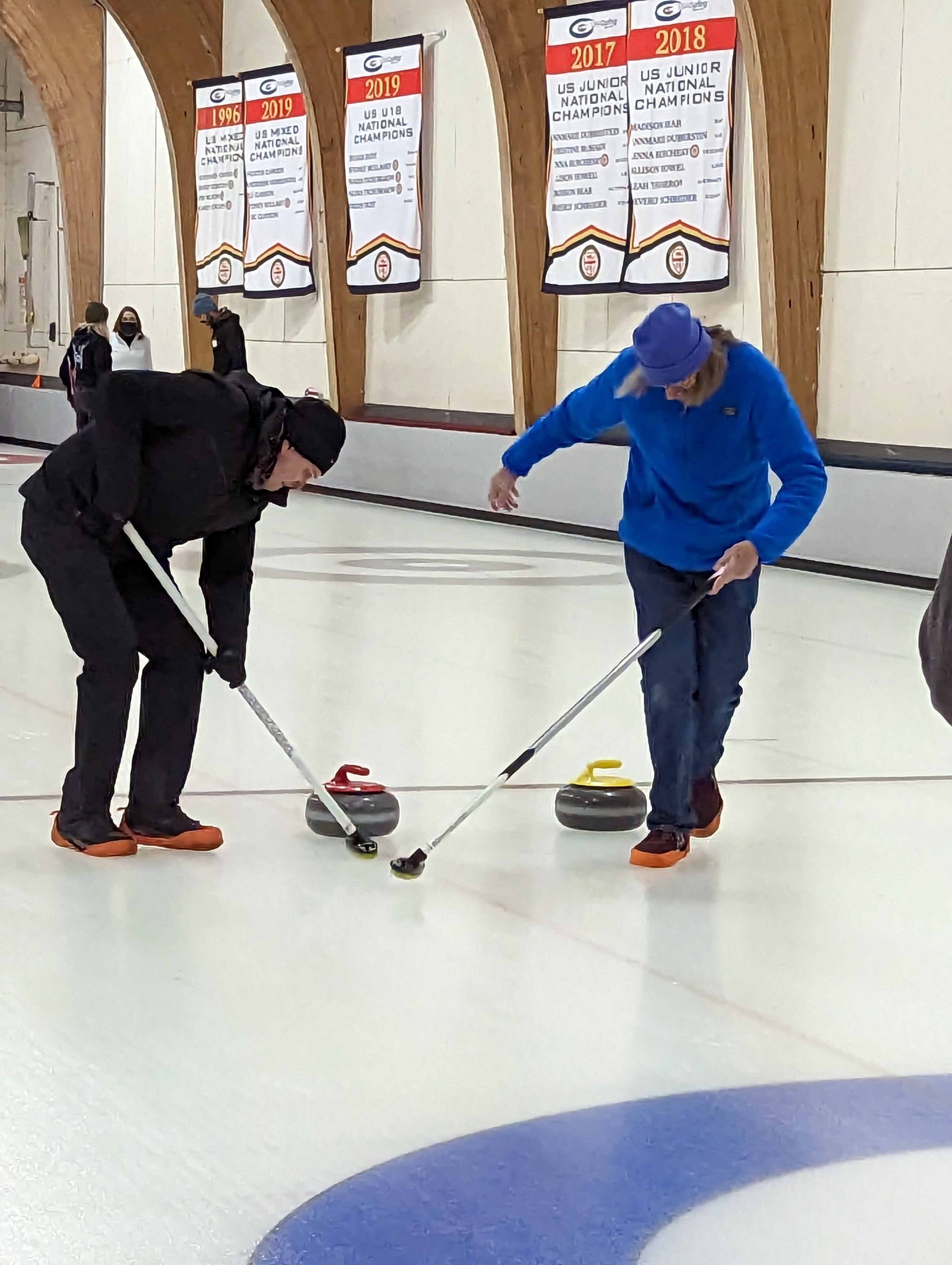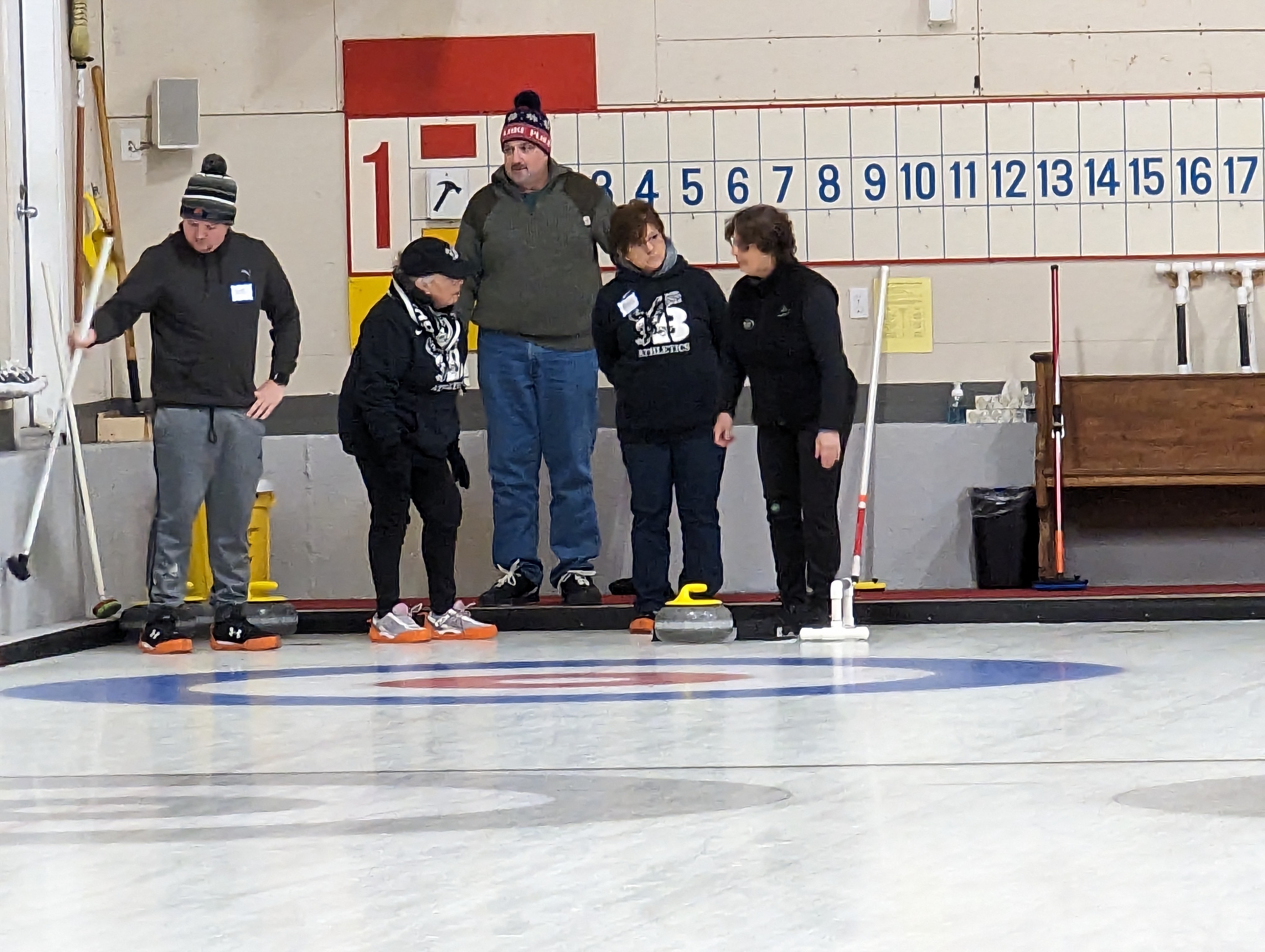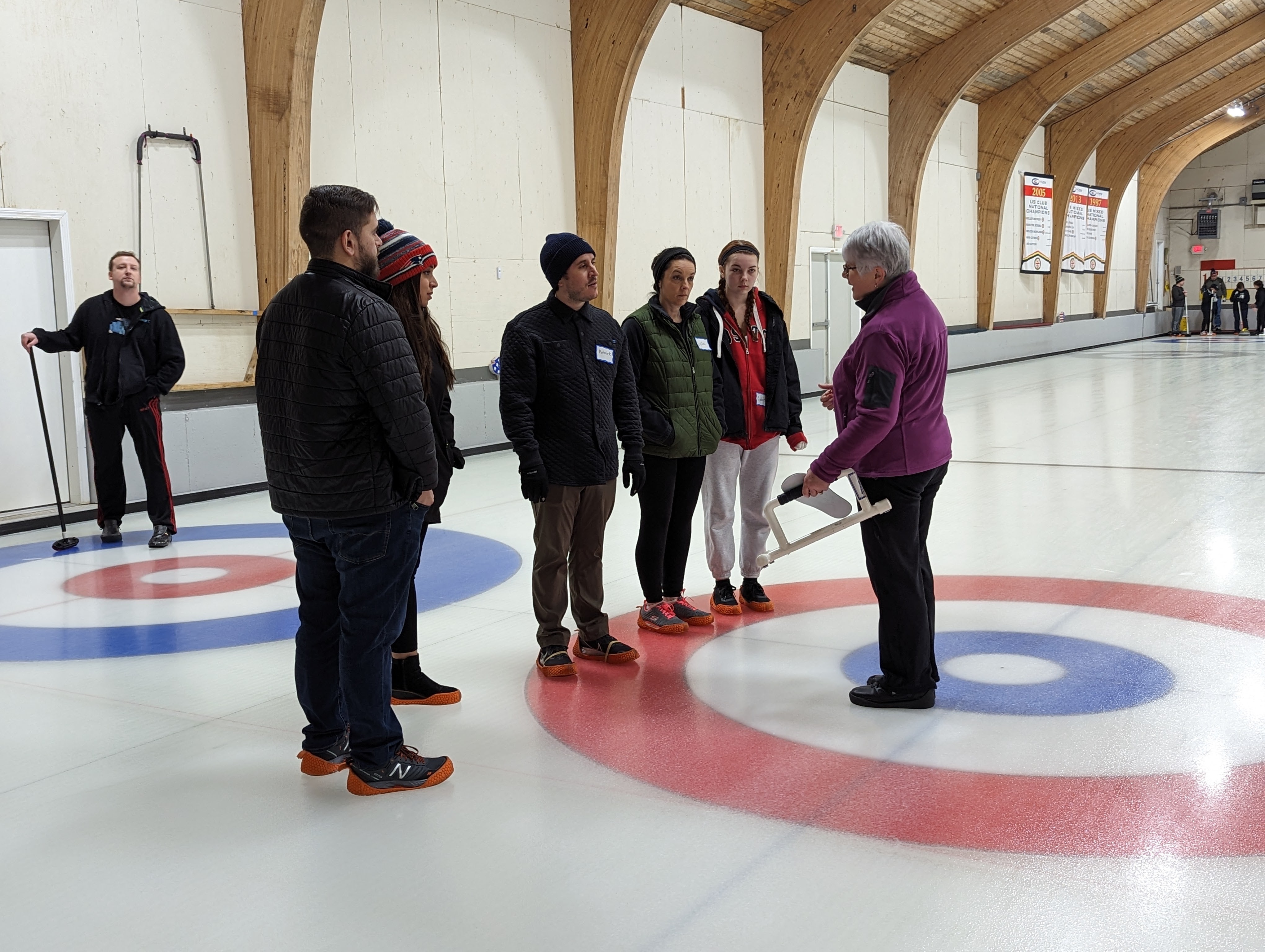 We started off with an informative safety briefing, then hit the ice to start learning the ropes of throwing, sweeping, and scoring. After a few practice rounds, each team played a brief game, then headed to the lounge for the traditional post-game drinks and banter. A great time was had by players and spectators alike. We look forward to hosting another curling event in the future! Good curling, everyone!