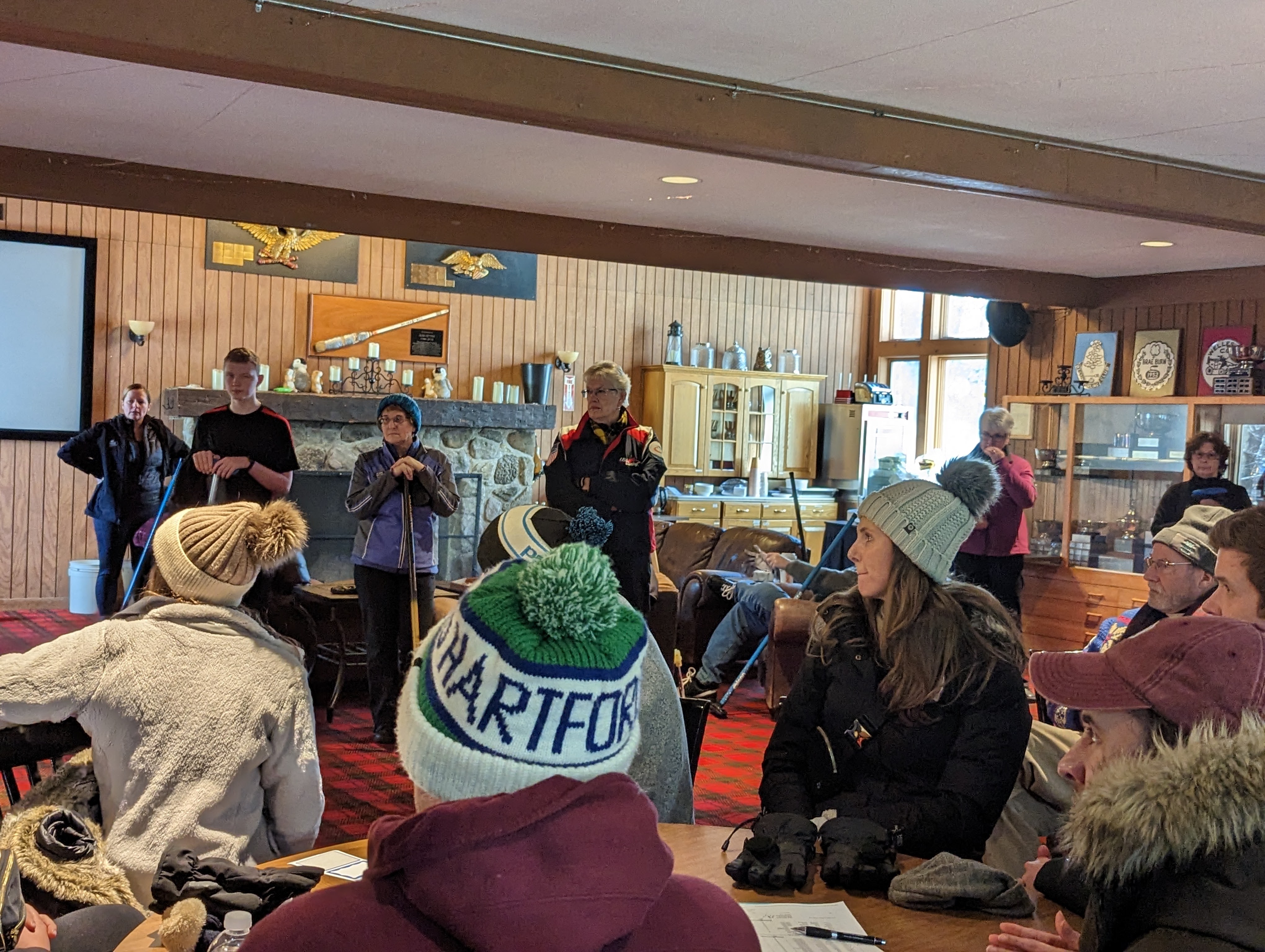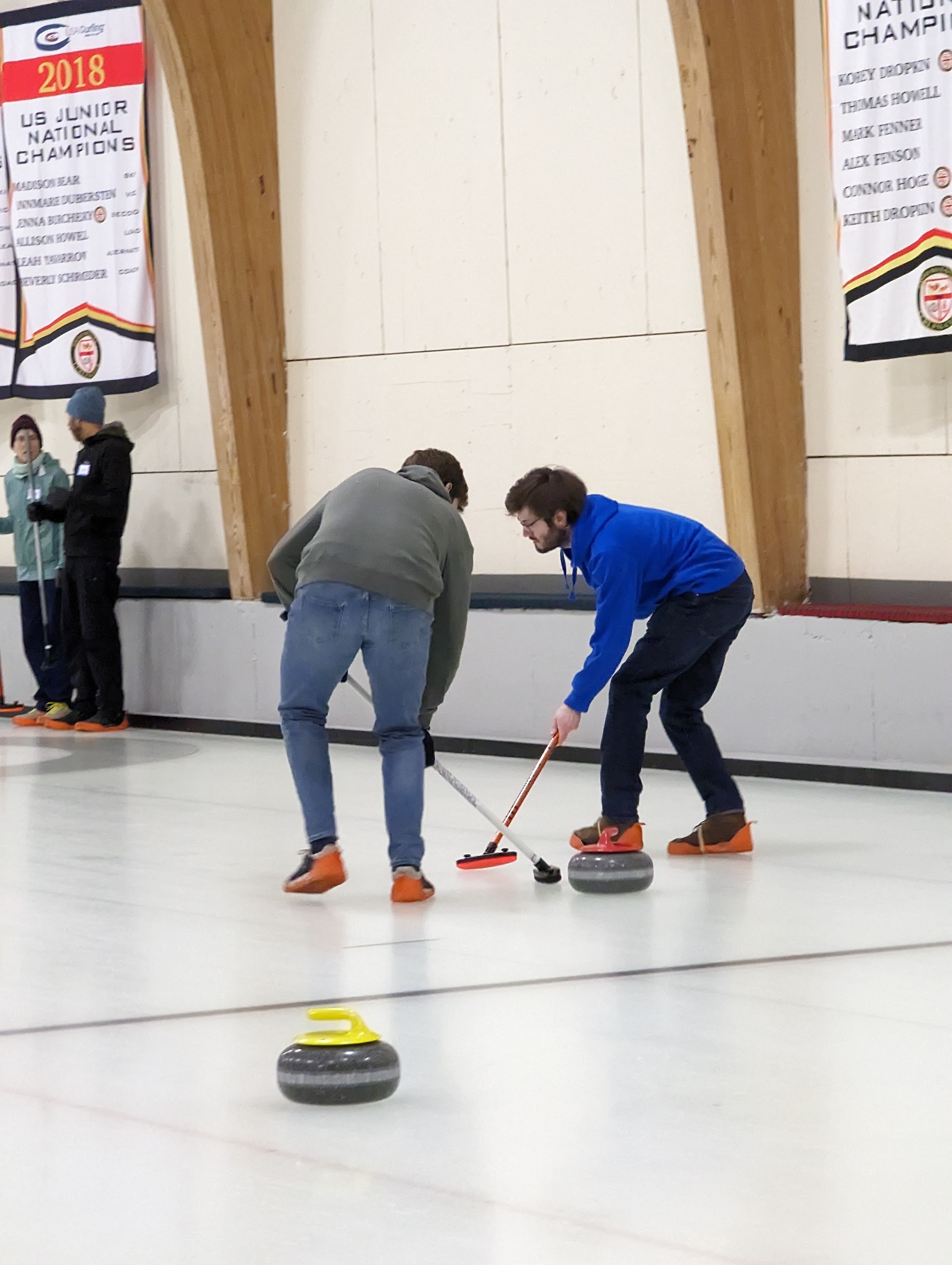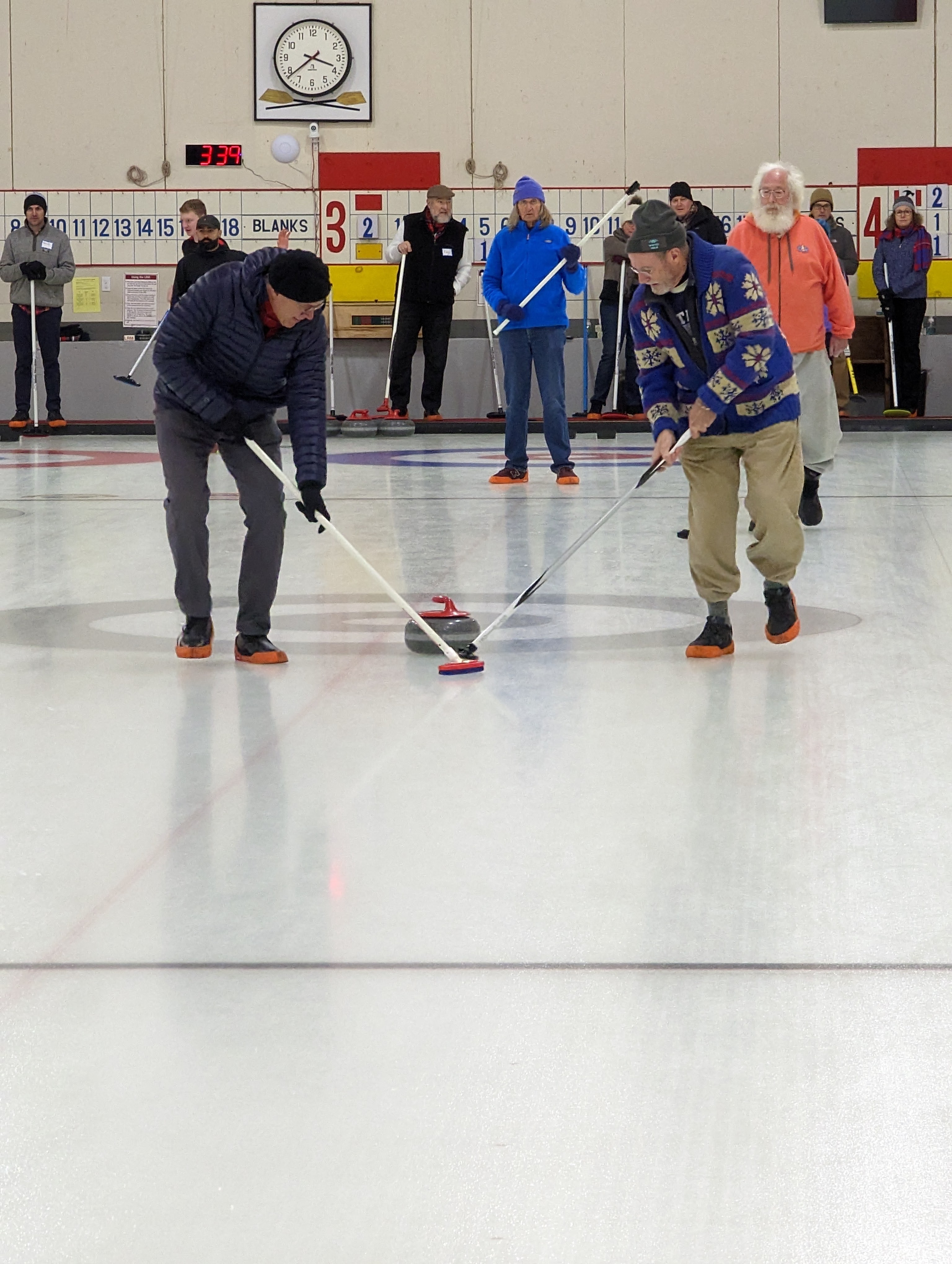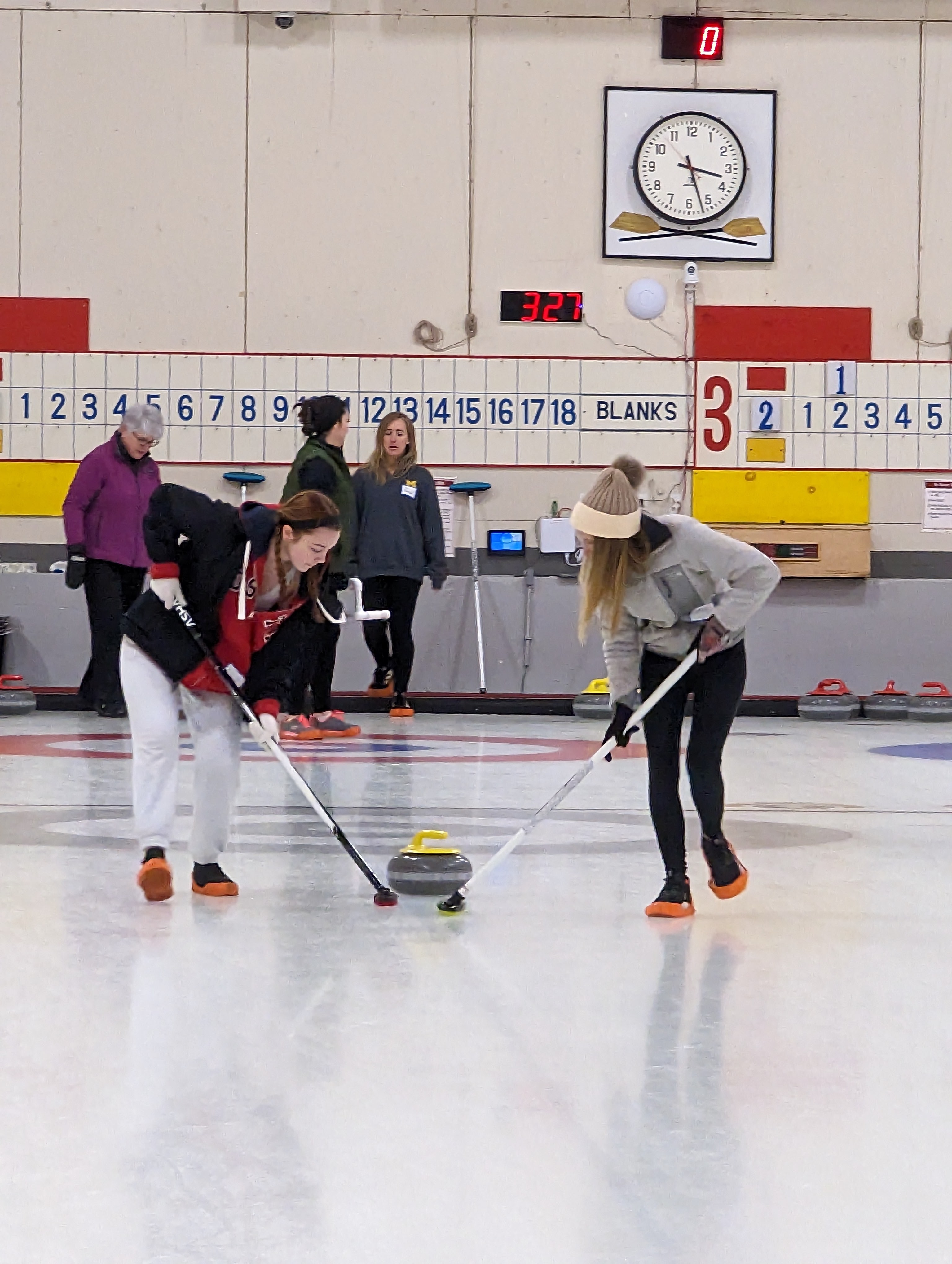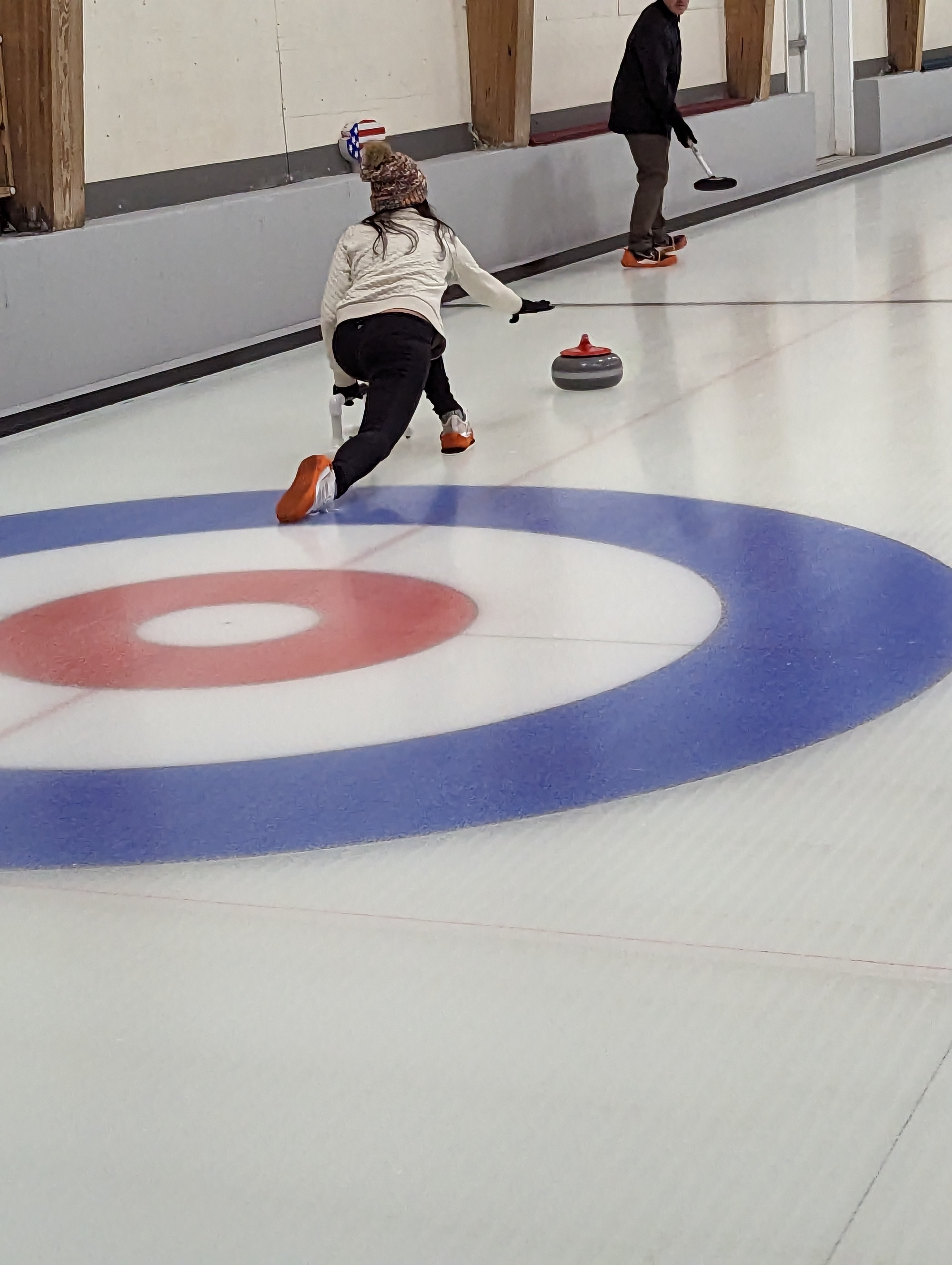 We started off with an informative safety briefing, then hit the ice to start learning the ropes of throwing, sweeping, and scoring. After a few practice rounds, each team played a brief game, then headed to the lounge for the traditional post-game drinks and banter. A great time was had by players and spectators alike. We look forward to hosting another curling event in the future! Good curling, everyone!