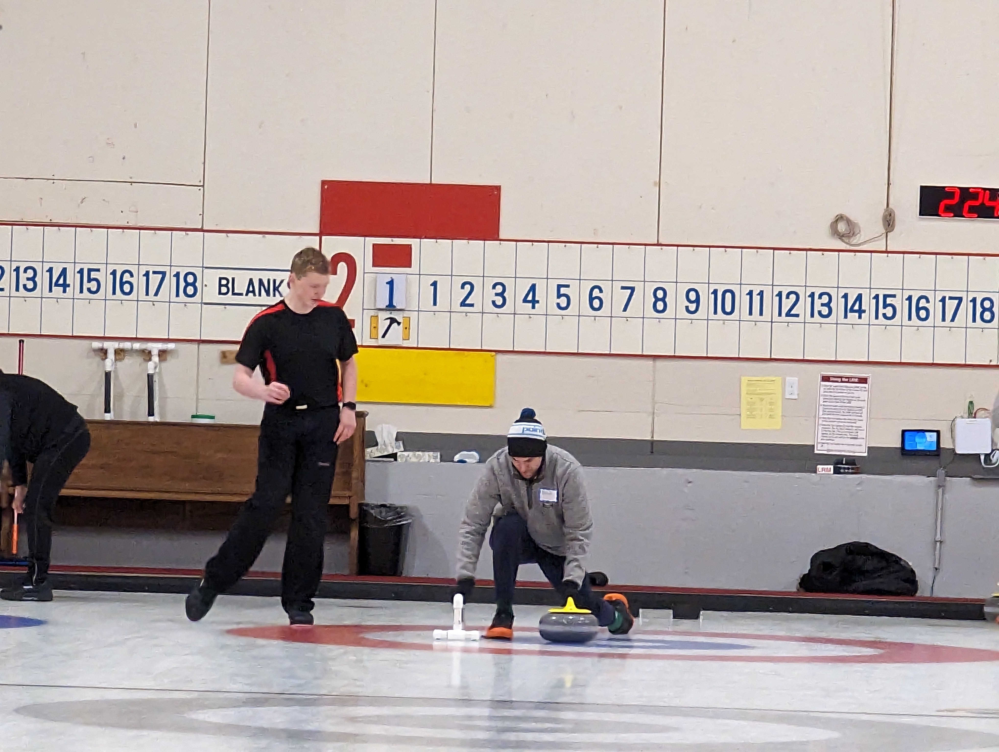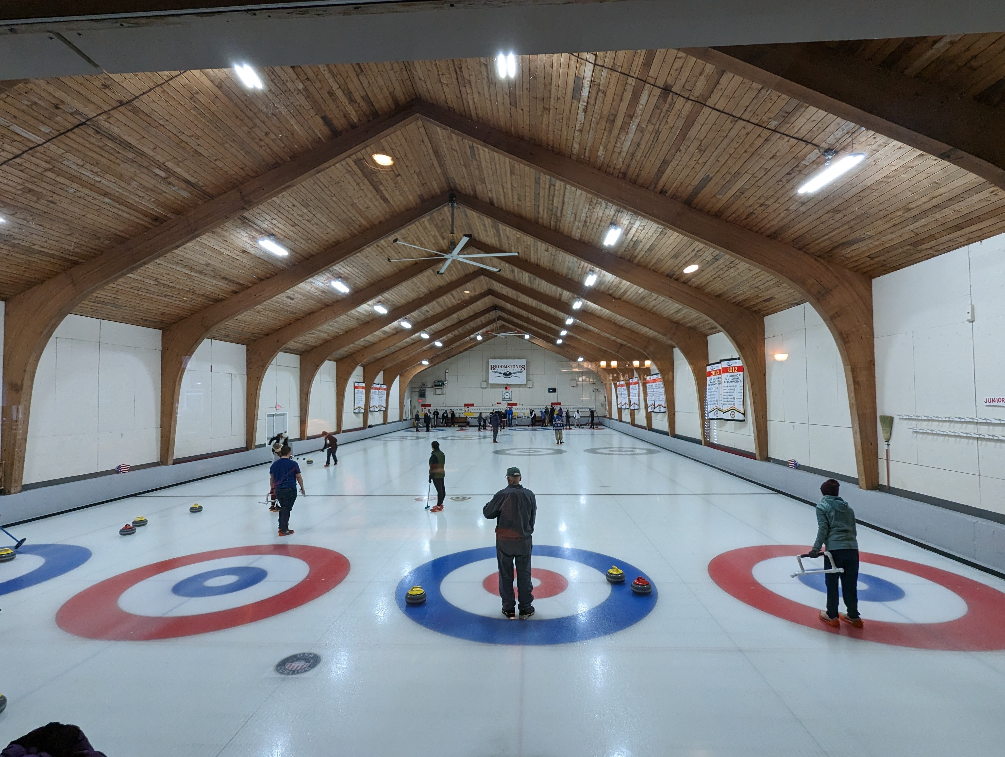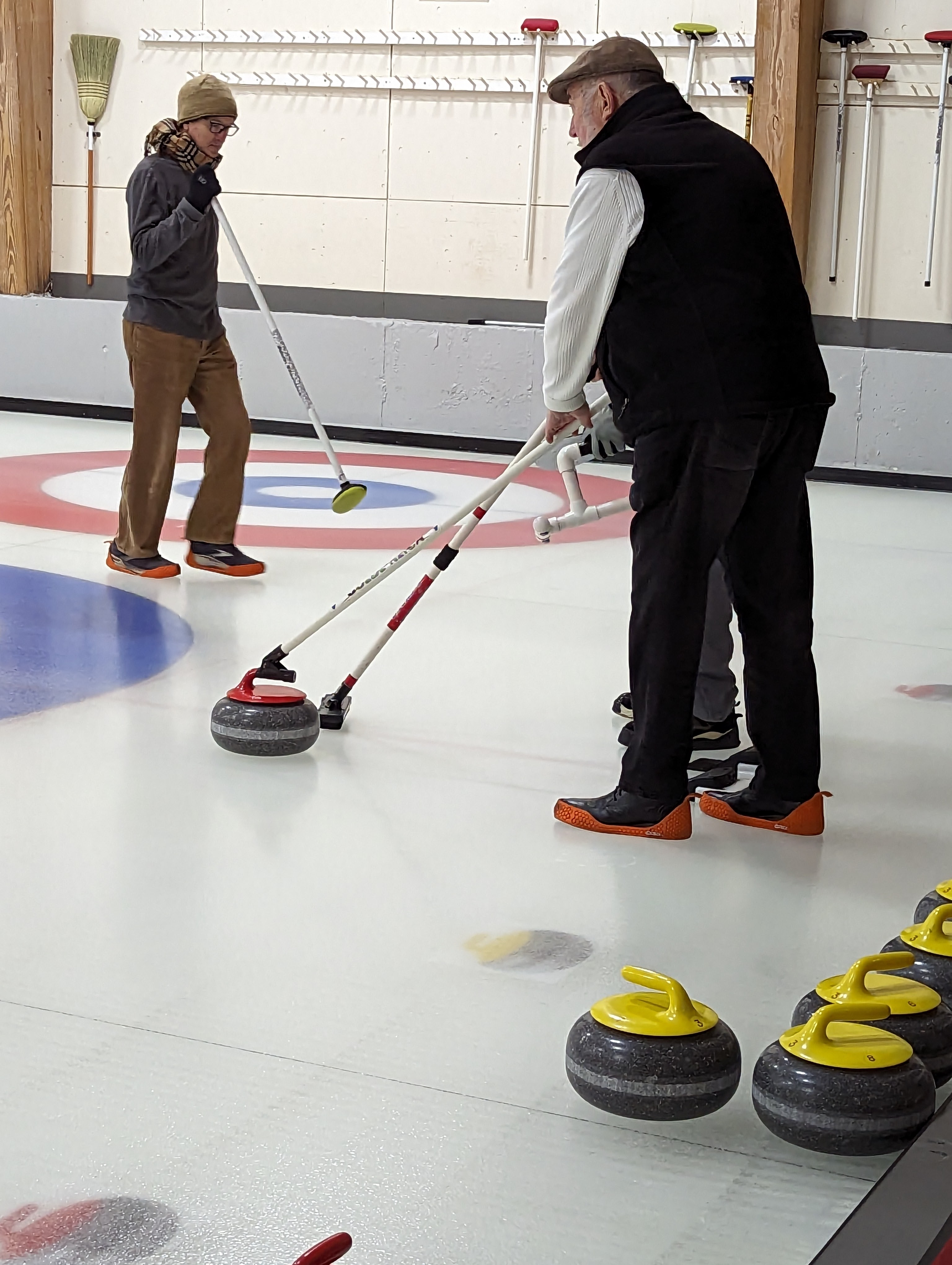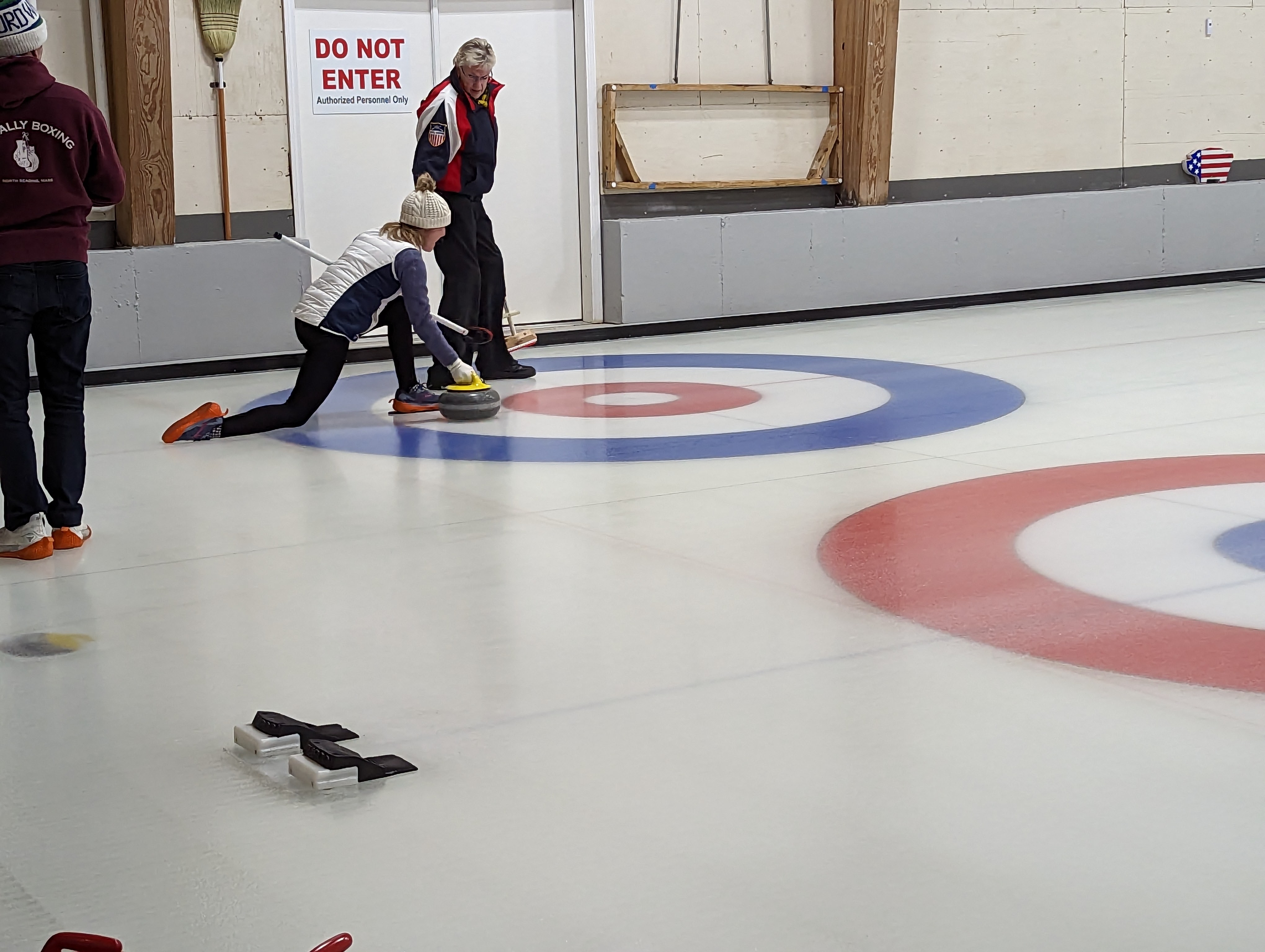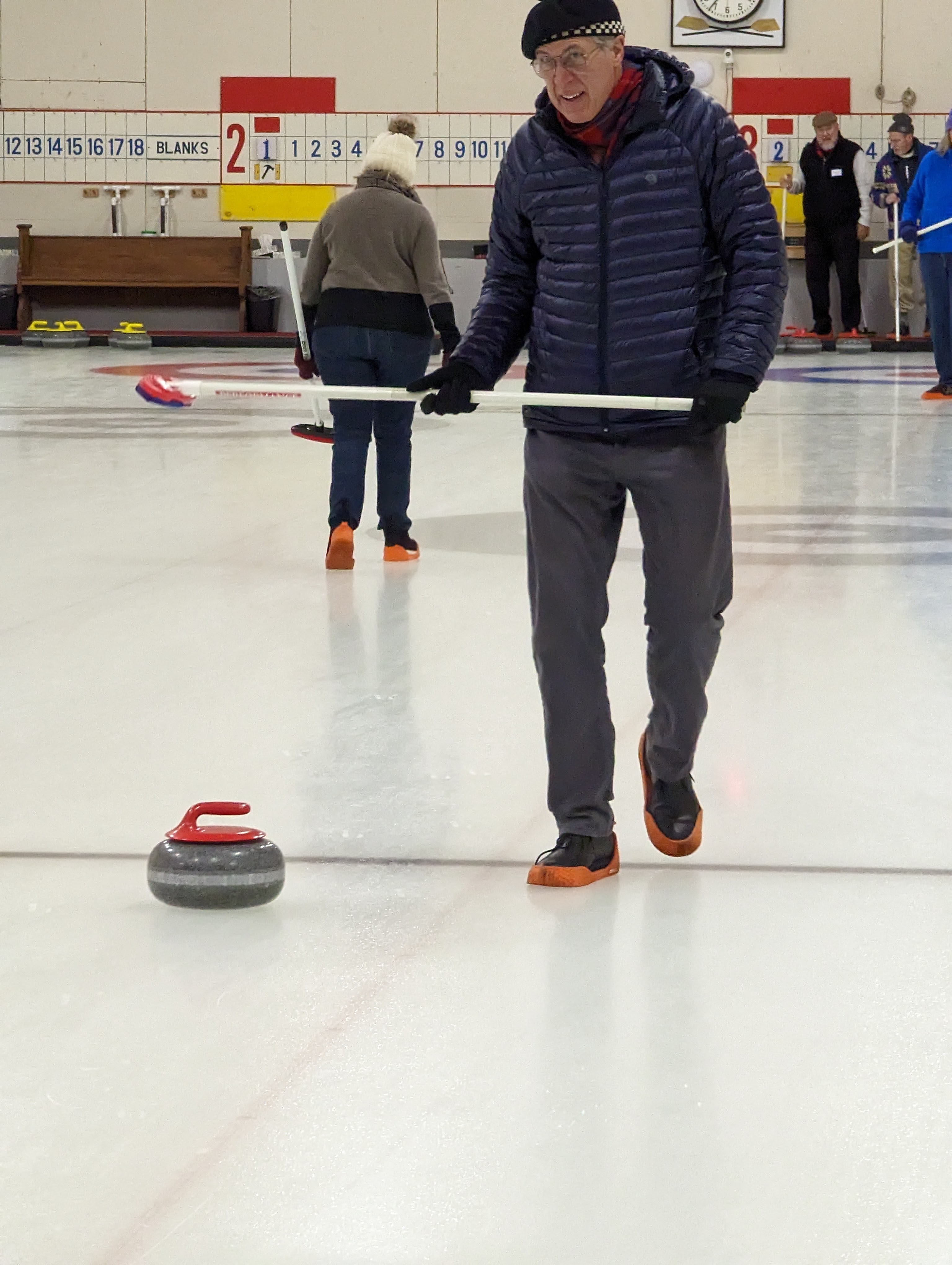 We started off with an informative safety briefing, then hit the ice to start learning the ropes of throwing, sweeping, and scoring. After a few practice rounds, each team played a brief game, then headed to the lounge for the traditional post-game drinks and banter. A great time was had by players and spectators alike. We look forward to hosting another curling event in the future! Good curling, everyone!